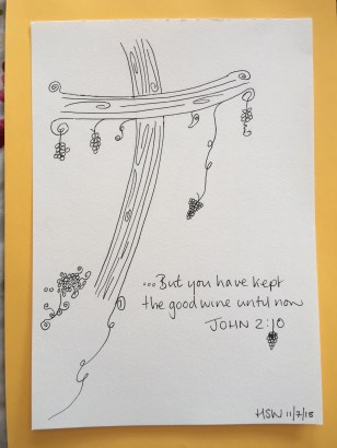 A few weeks ago, I was sketching some ideas for a project and when I started to draw the featured picture. I knew immediately that it was for one of my friends who supports my work, so I sent it to her the next day. She was amazed because she had been discussing the idea of God “saving the best till last” the very same day. In John 2, the wedding party are expecting to have the best wine first but when they run out of wine, Jesus surprises them by turning water into the finest quality wine. He uses a dead end situation to perform a miracle, and to create the miracle, he uses the most mundane thing, water. If he can do that at a joyful event such as a wedding, he will do the same for us in the most dire of situations too. He can take our “nothing” and turn it into a miracle.