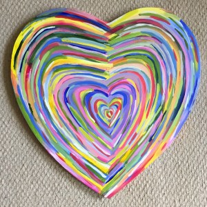 Earlier this month is was in an art shop and felt the prompted to buy a heart shaped canvas. I can’t say that it’s something I would normally go for but I bought it anyway. That same day, someone told me that they loved the bold colours in my previous work and that they would love to see more of that. Within 48 hours of that conversation, I painted the RAW HEART.