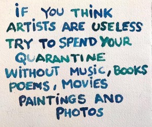 The necessity for the arts and its role in society has been brought to people’s attention during the lockdown. How many of us has listened to some music, read a book or watch a film or TV show during this time? Yep all of us. Without the arts, life would be dull, lack colour and also insight. Not only are the arts part of our entertainment, but they are also essential for good mental health, understanding concepts and culture, and provoking thought and conversation. The arts are often seen as frivolous and expendable, however they need to be protected for their philosophical and spiritual values. At some point everyday, we reach for something creative to inspire and motivate us.